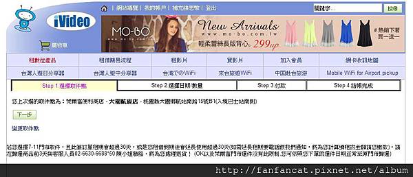 這是取自iVideo官網的簡易流程,首先註冊並登錄會員,帳號會用身分證字號,密碼當然就是自己設定,接著選擇商品,確認完所有選項就是結帳,用信用卡付費,最後就是出國當天取件,回國當天還件啦!是不是很easy啊!接著就是實際操作一次啦!