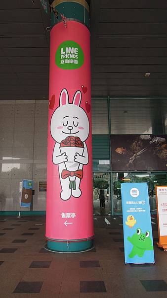 一來到士林科教館,就看到外面柱子上都貼滿了LINE裡面的角色~好壯觀哪