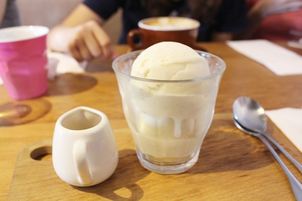 一杯冰淇淋,接著要把一小壺濃縮Expresso給淋進去讓它們不分你我