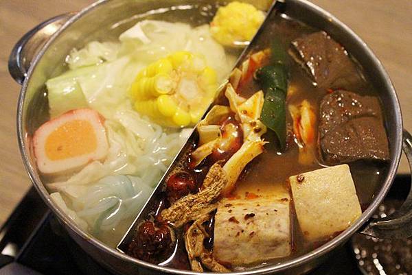 麻辣鍋的湯頭還ok,微微的辣;另一半就稍嫌清淡了一點,覺得沒什麼味