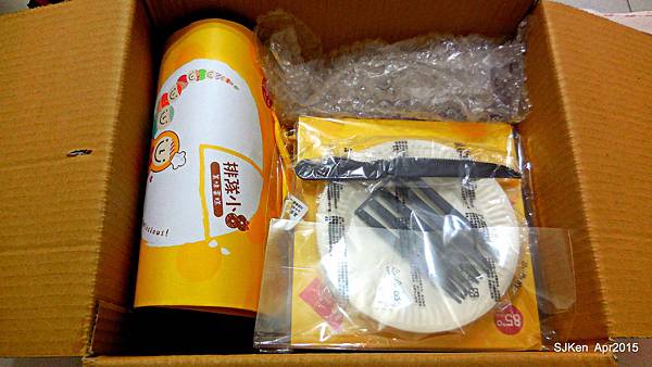 前些時候幸運抽中愛評網「85度C甜點伴手禮【北海道極濃起士派】宅配免費體驗!」口碑券,經過了漫長的等待,終於經由黑貓宅急配人員送到我手中,因為是冷凍商品,箱子外面都貼有冷凍商品告知,打開外箱,裡面是一盒「北海道極濃起士派」,一個手提袋與一包裝有刀子與盤叉的塑膠袋,還有兩張跟本次體驗商品無關的「巧克力黑森林蛋黃糕餅店」貼紙,上面的廠商也不是85度C ,不知道是不是85度C甜點伴手禮『北海道極濃起士派』的委外廠商? 讓人頓感疑惑。