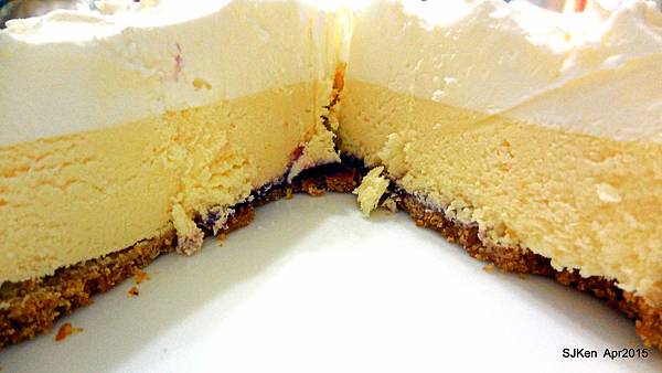 第二層則選用北海道Luxe新鮮乳酪製成,濃郁又不膩的口感是「北海道極濃起士派」最靈魂的核心;用刀切開一目了然,可以看到不同層次的特點。乳酪爽口香濃直沁入口中心裡,讓人回味無窮!