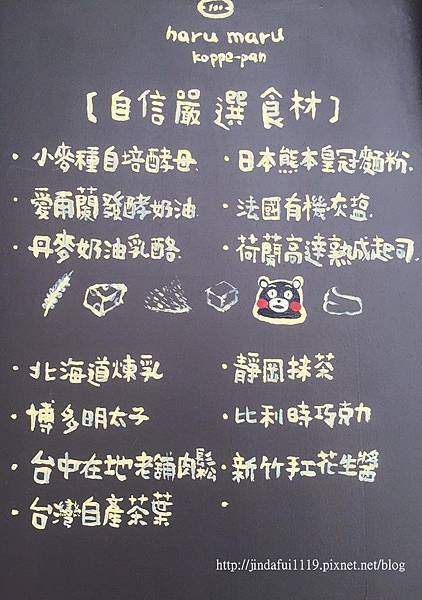 ▲春丸麵包製作所是選用日本熊本皇冠麵粉,故麵包袋上有熊本熊的玉照,這應該是史上最卡哇伊的麵粉袋了吧!連我都好想要,其實我就是衝著這麵粉袋來春丸的(居然不是為了餐包!!!),畢竟我是熊本熊的粉絲(少女心湧現)