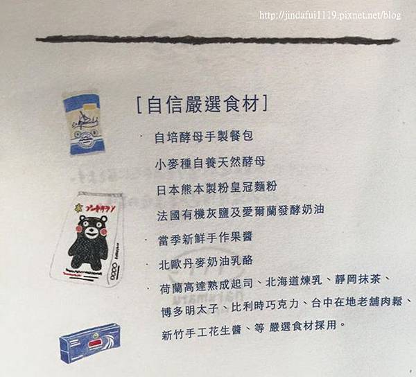 ▲手寫版的店家嚴選食材簡介,那隻熊本熊太搶眼了XD