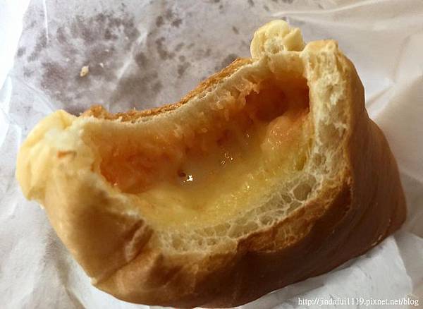 ▲待友人咬了一口後,發現裡頭滿滿的都是明太子,友人表示不錯吃,但隨後又補充明太子不管做甚麼都好吃XD