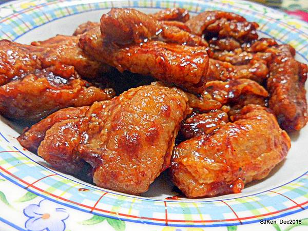 第一道品嚐的「京都排骨」就讓全家大小驚豔,「億長御坊」店家嚴選用CAS認證豬肉,將排骨去骨後急凍成型,解凍後放入電鍋烹煮,起鍋裝盤後靠近都能聞到香氣,入口慢慢咀嚼,好像能一一品嚐到內容物中介紹提到的黑棗、糖蜜、話梅、番茄等食材,醬汁恰到好處,不會過鹹或過甜,晶瑩剔透閃閃發光的豬腩排肉,去骨後的肉質軟嫩真的做到牙口不好的長輩或小朋友都能輕入口,十分好吃!
