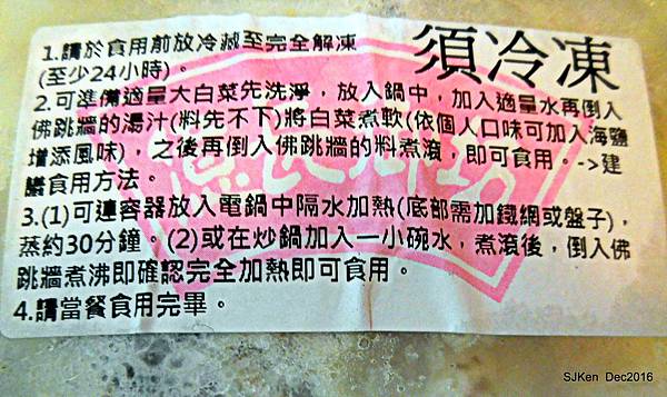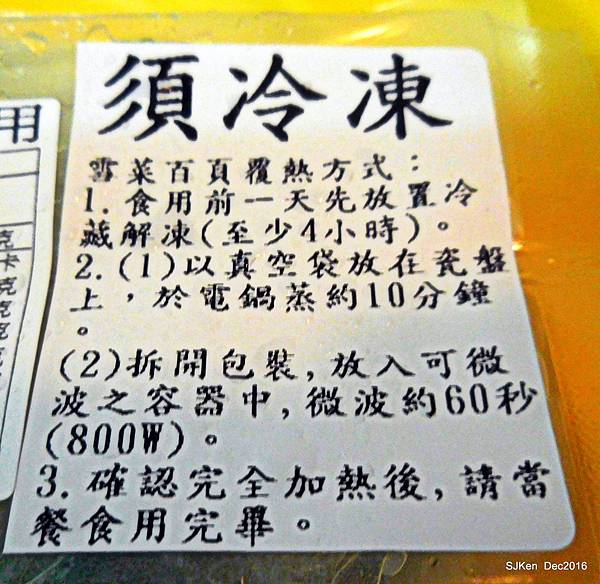 這次體驗的「億長御坊」每道年菜上都貼有「非供即食請加熱食用」「須冷凍」的提醒標語,上面詳載了每道年菜的品名、內容物、重量、保存方式、有效日期、營養標示、廠商名稱、電話與地址,與解凍烹調方式說明,讓人一目了然處理起來更方便。