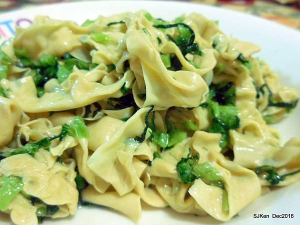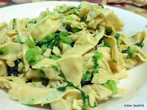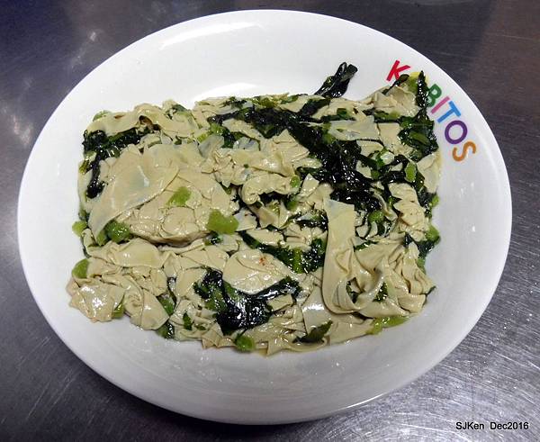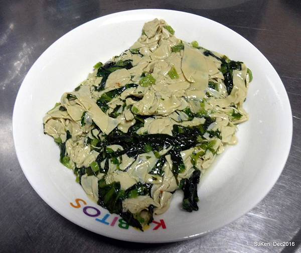 第二道品嚐的是傳統上海江浙菜的「雪菜百頁」,「億長御坊」店家選用了非基改百頁豆腐,搭配口感爽脆的優質雪裡紅兩道主食材,佐以鹽與糖攪拌調味,完全沒有其它人工添加,就是一道讓人拍手稱好的小菜,同樣經過解凍與電鍋蒸熱後,一片片道地入味的「雪菜百頁」就入口,鹹度適中特別下飯!