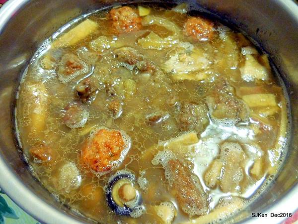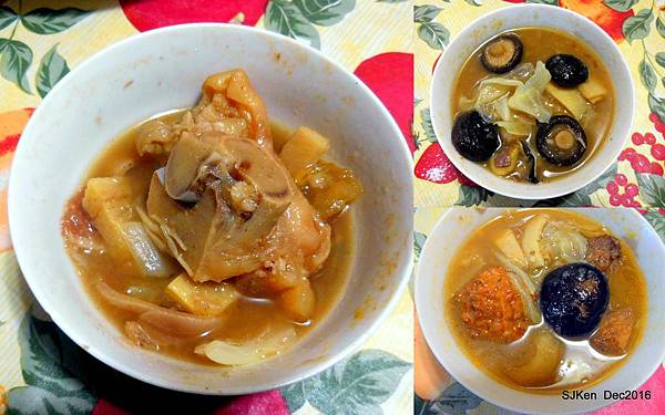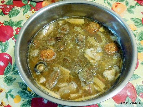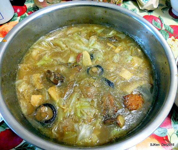最後品嚐的是這道不管是用料還是份量都十分豐盛充佩的「佛跳牆」,一整盆倒出後就可以感受其多樣的用料,包括有店家招牌北京手工小肉丸、台灣芋頭、香菇、栗子、筍絲、豬腩排骨酥、金華火腿、魚皮等多樣食材,高湯使用豬骨慢燉四到五小時,家人也特別加了些高麗菜、白菜下去烹煮,一上桌就吸引了大家的眼光,一邊吃一邊尋寶,讓大家除舊迎新財運大旺,