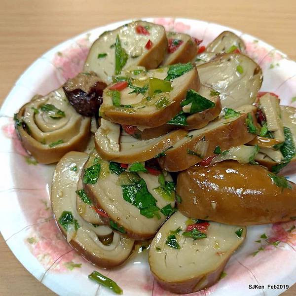 首先品嚐的是店家調味過的一盤小菜「素雞」(NT$30),完全就是我最愛的風味,素雞軟硬候薄都恰到好處,大小又剛好一口可吃下,真的好開胃爽口!