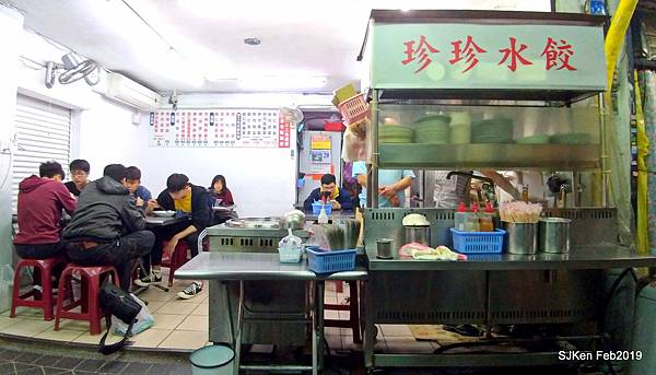 每回去逛華陰街商圈,都是排隊買甜甜圈、胡椒餅與排骨酥麵,二月下旬無意間逛到這家隱身華陰街巷弄內,位於台北市大同區華陰街175號,主打多種風味水餃、雲吞與撈麵的「珍珍水餃」,店前白底紅字的招牌顯得十分吸睛,傍晚時分整家店已經接近客滿,店內牆上有巨幅招牌,餃子一顆NT$6,各種麵湯餐點定價都在百元以下,真的是十分平價,當晚還有不少人排隊等著外帶。