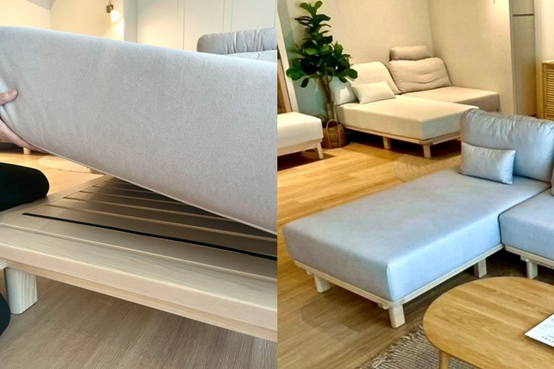 另外還有模組化設計也很好用,我們一開始買的是雙人加貴妃椅的組合,之後可能會多加一個單人座,這樣家人來時不用搬小椅子出來,雖然現在沙發選擇很多,但真要找到適合自己家裡空間,而且坐起來舒服又好整理的真的多,我覺得這張用了兩個月下來,算是很符合我們當初的需求