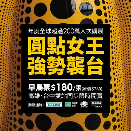 日本重量級藝術家草間彌生在台首次個展,2015年在高雄與台中兩地登場,涵蓋草間橫跨60年的創作與新作,是台灣草間彌生空前個展。