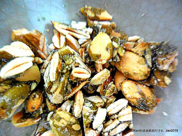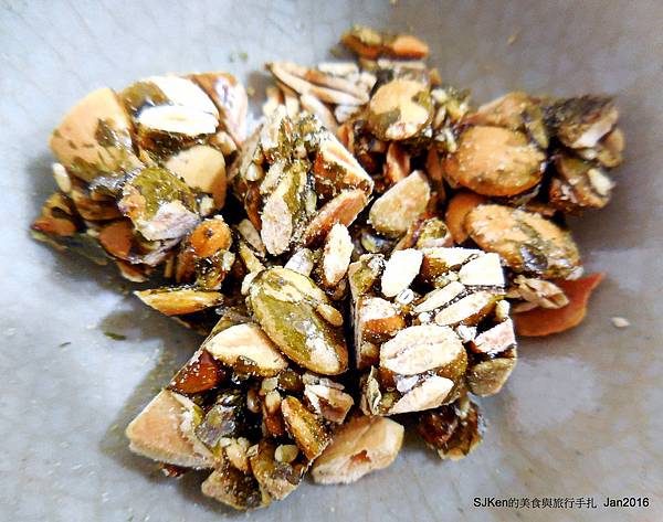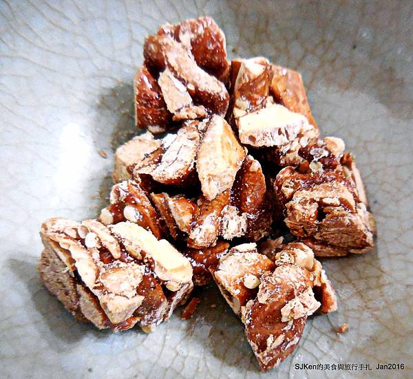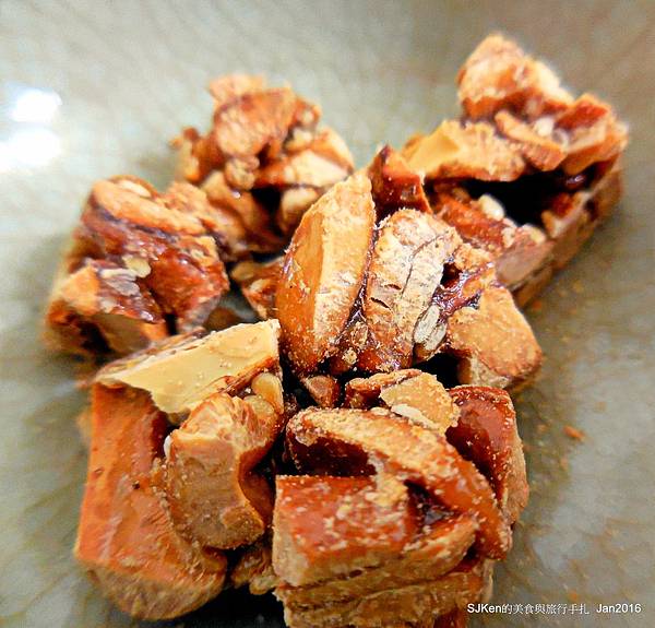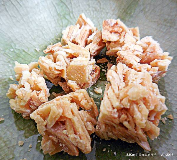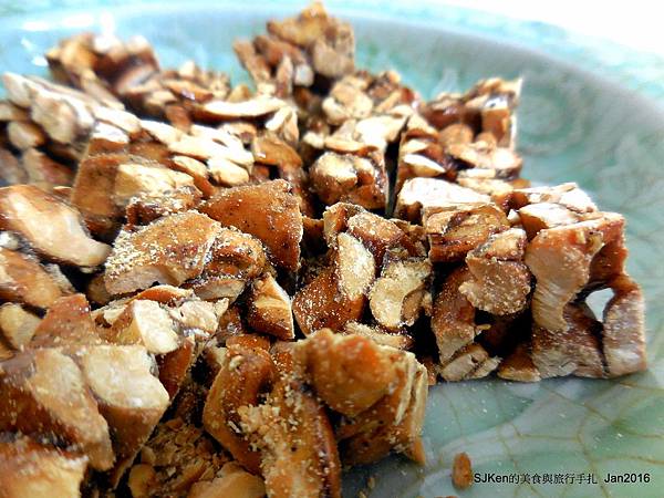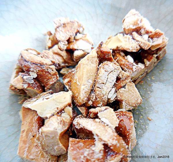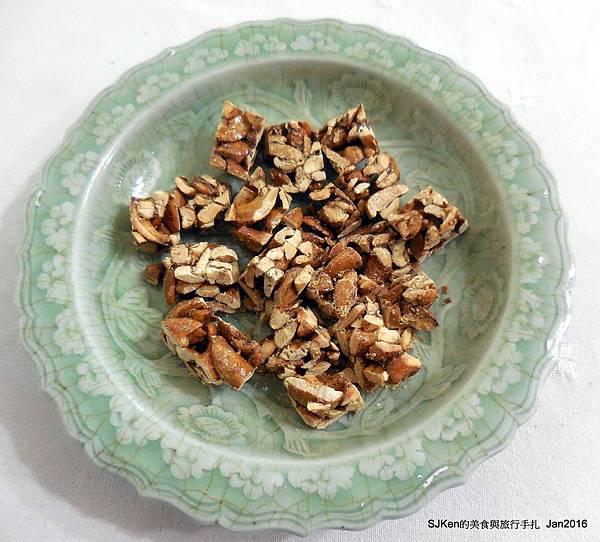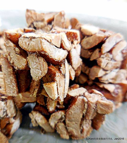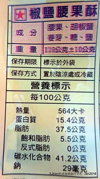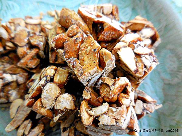 首先品嚐的是「台東口福手作坊杏仁酥專賣店」去年冬天推出新品「椒鹽腰果酥」,成份由腰果、胡椒鹽、麥芽、糖與鹽共同組成,每100g熱量有564大卡,顆顆碩大飽滿,外表看起來像一般常吃到的花生糖,但入口輕脆香酥,一點都不費勁! 混搭香濃的胡椒鹽與腰果,吃起來脆中帶鹹,喜歡重口味的朋友,「椒鹽腰果酥」是首選美味!