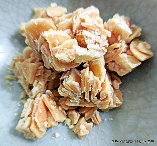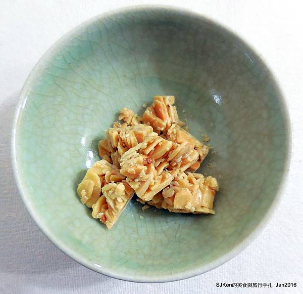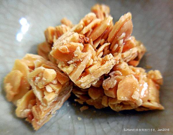 再來是「原味杏仁酥」,融合了白芝麻、杏仁、麥芽、糖與鹽製成,清脆的杏仁片光看外表就很吸引人,入口混搭著白芝麻與杏仁的芳香,吃起來特別順喉!
