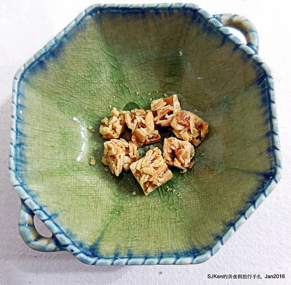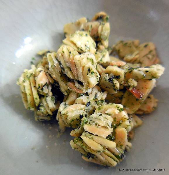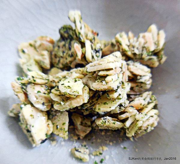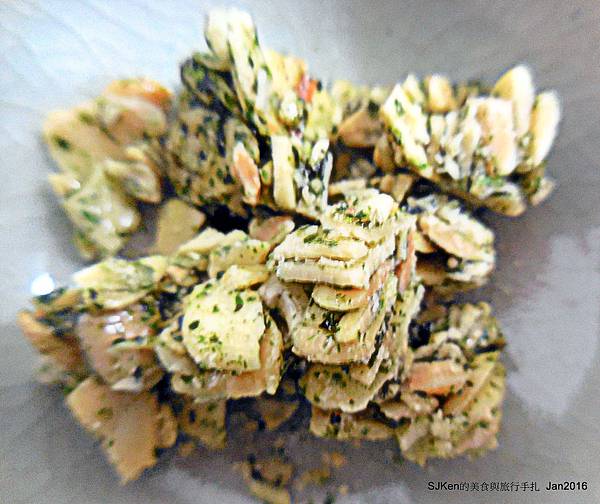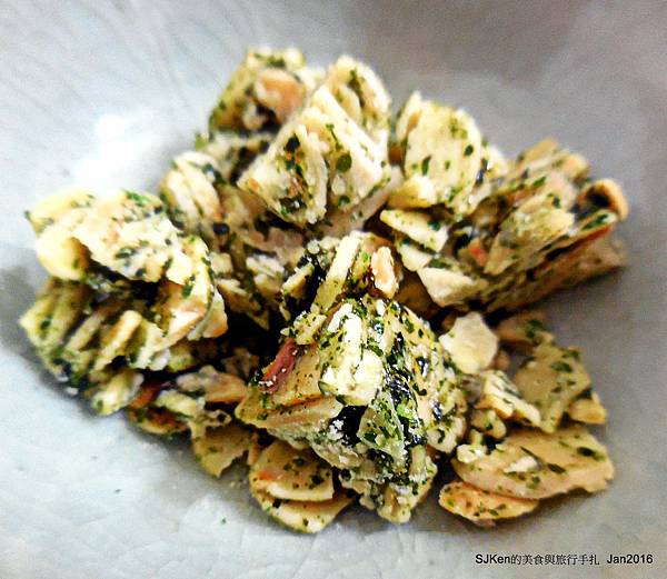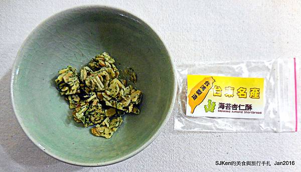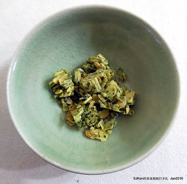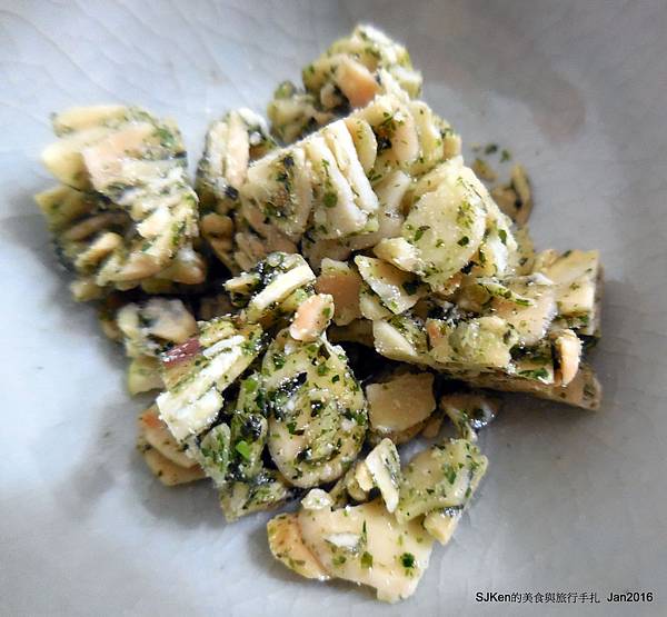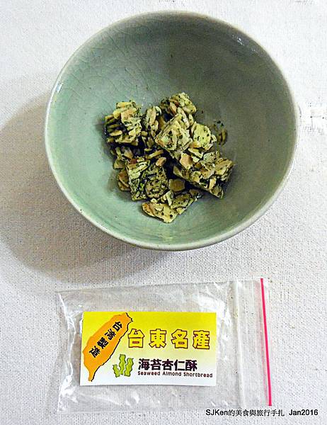 最後嚐鮮的是「海苔杏仁酥」,海苔特有的香氣跟杏仁也很搭,顏色鮮綠象徵春回大地的清新,吃起來也是一整個很爽口!