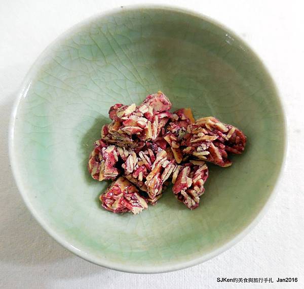 然後是添加了洛神的「洛神杏仁酥」,不管視覺還是口感都很吸引人,香潤甘甜的滋味,一整個感受到了新春喜洋洋,鴻運大展的歡慶!