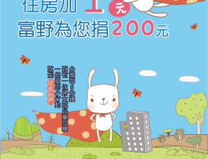 花蓮富野渡假酒店首度與婦女救援社會福利事業基金會合作,將心靈的溫暖轉為正義的行動計劃,「打造幸福住房專案」活動自11月1日起至11月30日,住房加1元,花蓮富野渡假酒店將捐贈每房台幣200元。